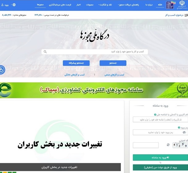 در درگاه ملی مجوزها https://mojavez.ir/ درسامانه سماک https://semak.maj.ir/